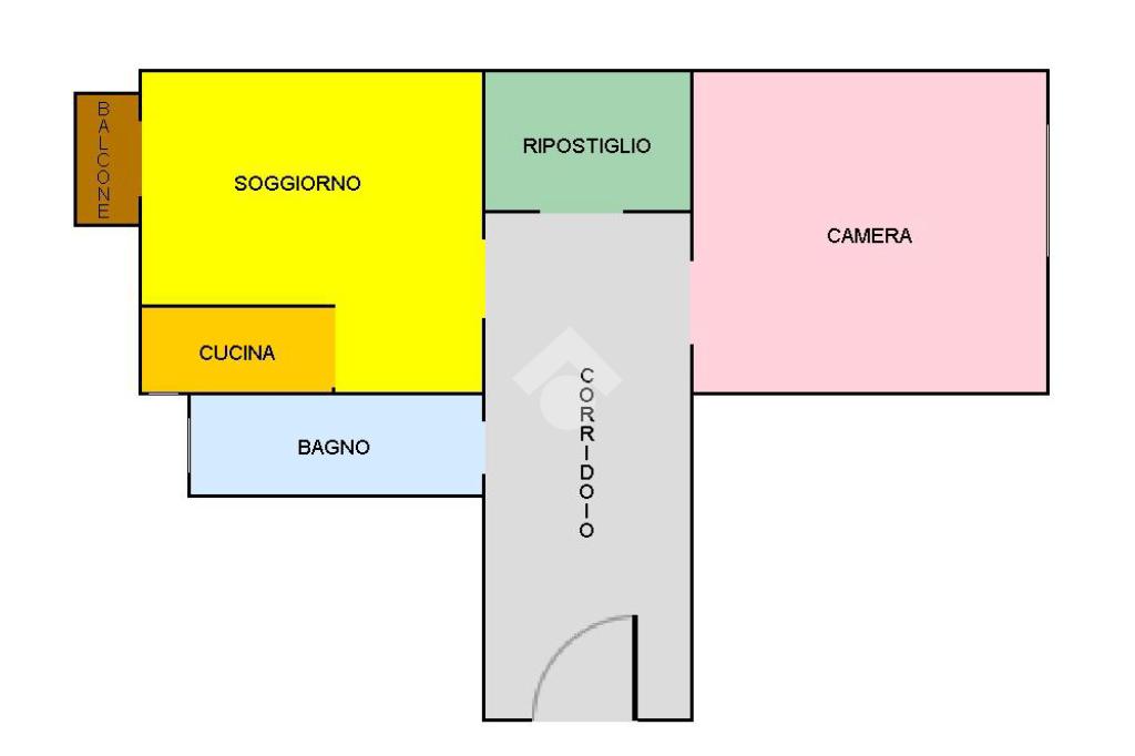 L’appartamento è composto da ingresso in corridoio, soggiorno con cucina a vista e accesso al balcone, camera da letto, bagno finestrato e comodo ripostiglio.