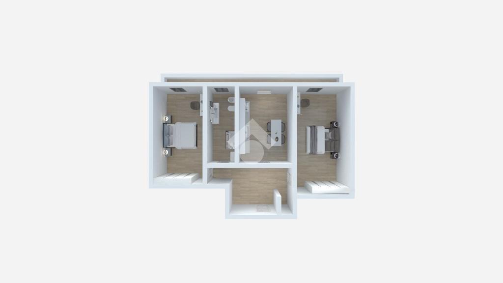 L’immobile è composto da ingresso su disimpegno, spaziosa cucina abitabile con accesso ad ampio balcone, due camere matrimoniali di generose dimensioni e bagno finestrato con box doccia.