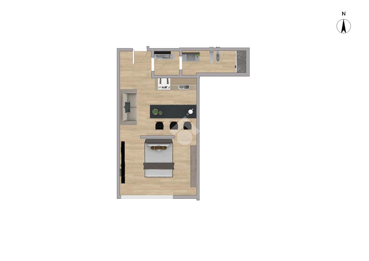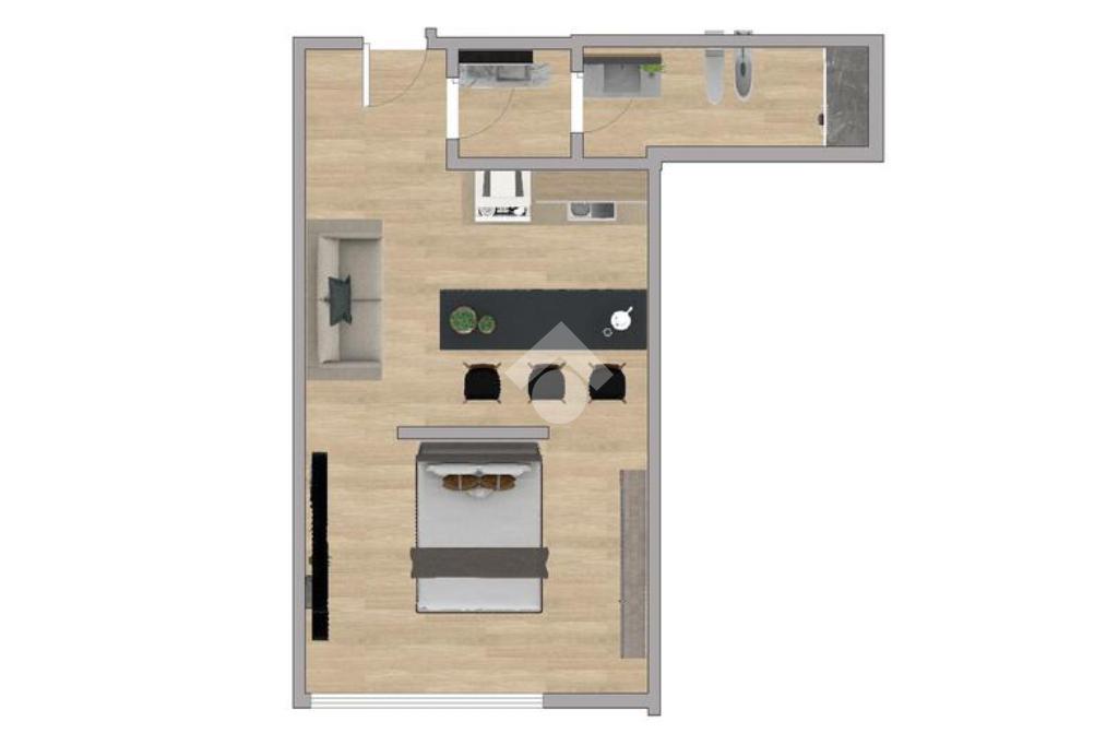 L’appartamento è completamente ristrutturato e si presenta in ottime condizioni. L’ingresso conduce direttamente alla zona giorno con cucina a vista, luminosa e ben organizzata. La camera matrimoniale, ben separata da un muro divisorio, garantisce privacy e comfort. Completa la soluzione un bagno moderno, rifinito con materiali di qualità.