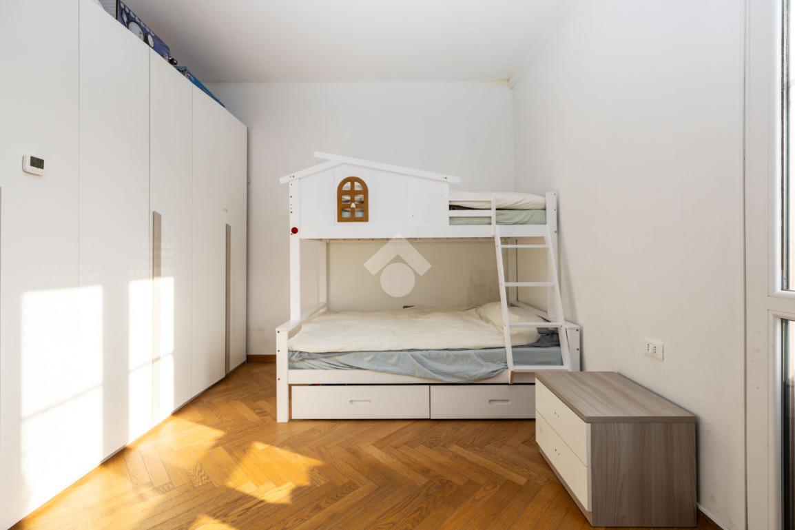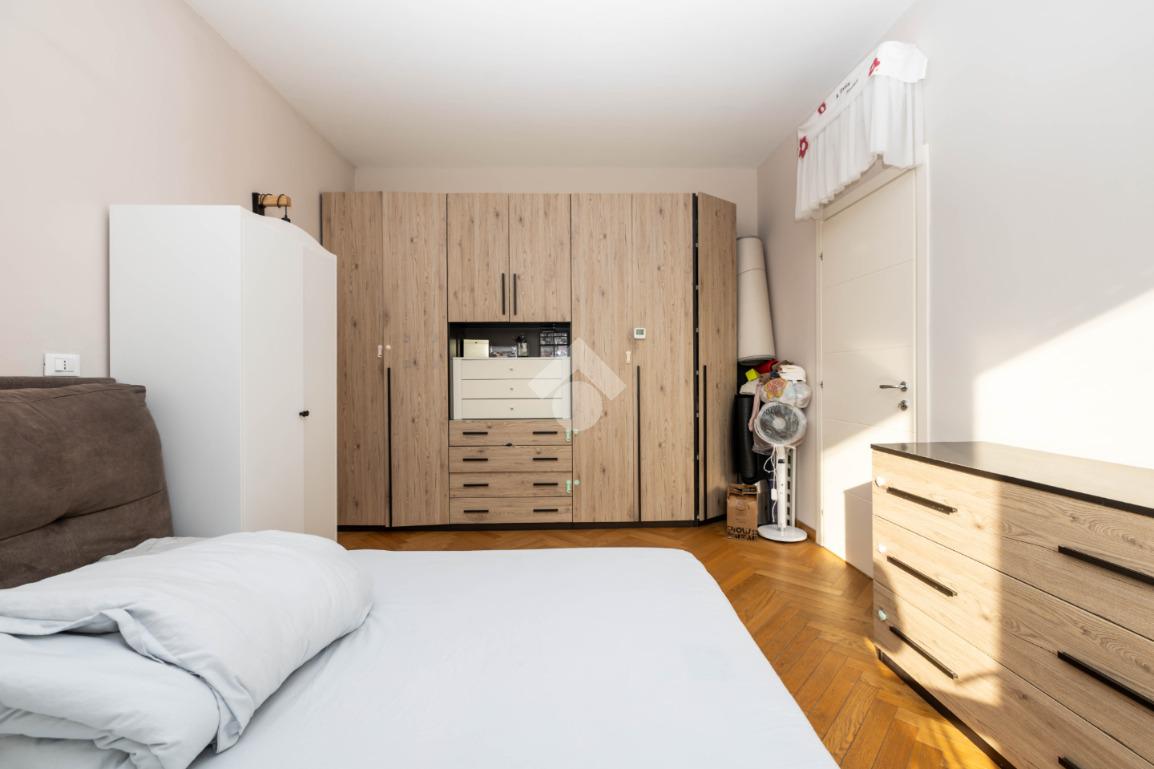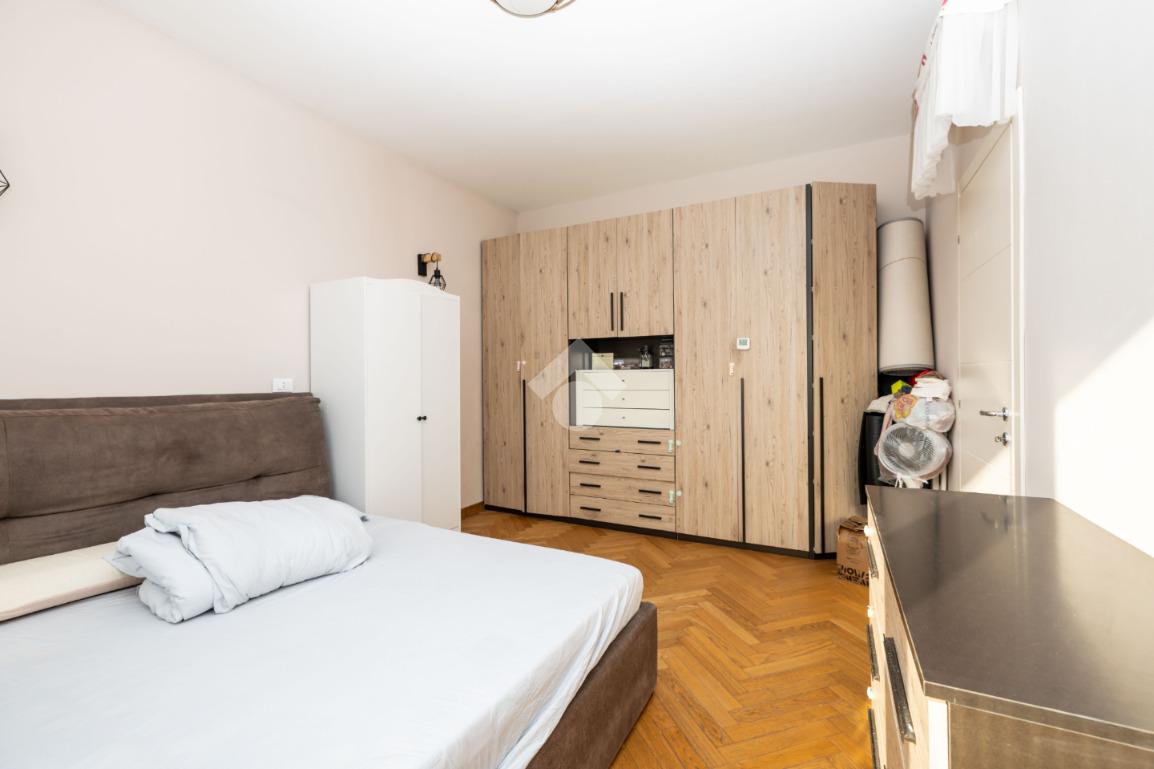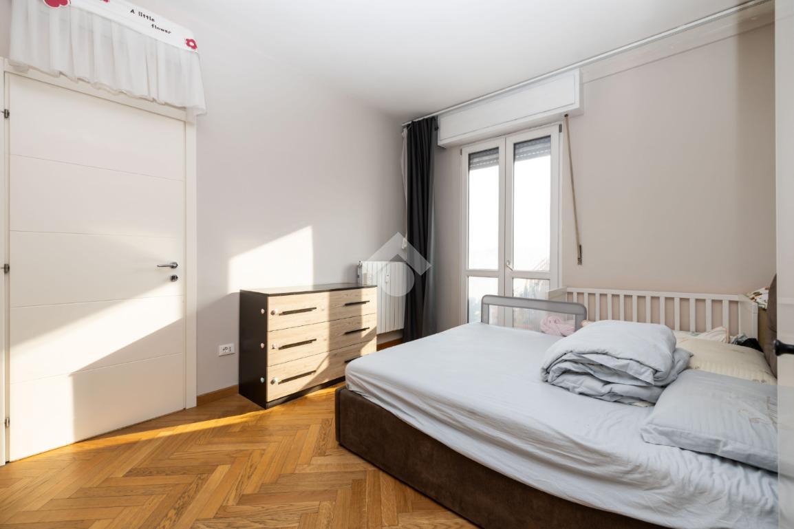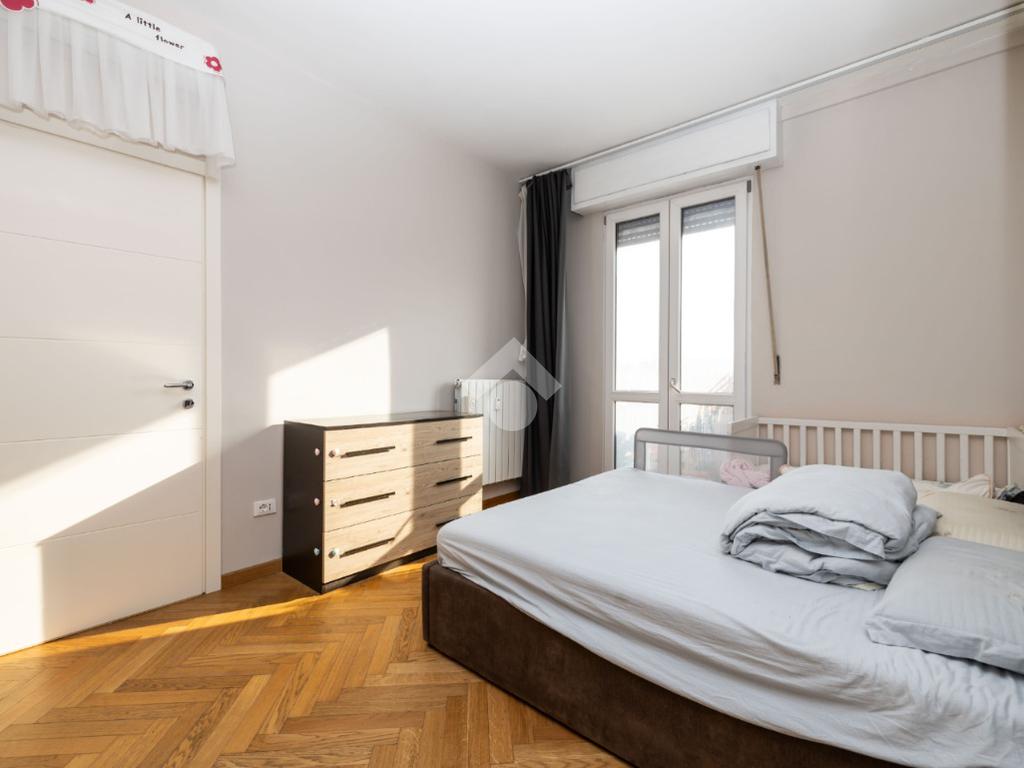 La zona notte è composta da due camere da letto matrimoniali, entrambe con accesso al balcone e pavimenti in parquet. L’immobile è dotato di infissi in triplo vetro che garantiscono ottimo isolamento termico e acustico, oltre a impianto di aria condizionata.