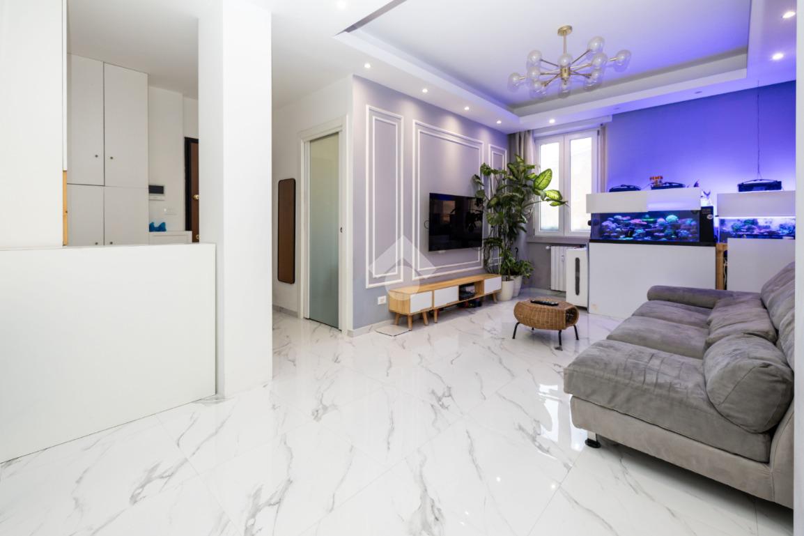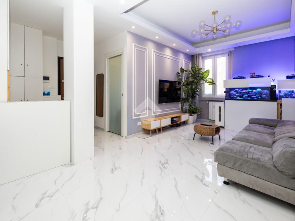 Proponiamo in vendita ampio trilocale di 90 mq, completamente ristrutturato, situato al quarto piano di uno stabile servito da ascensore.