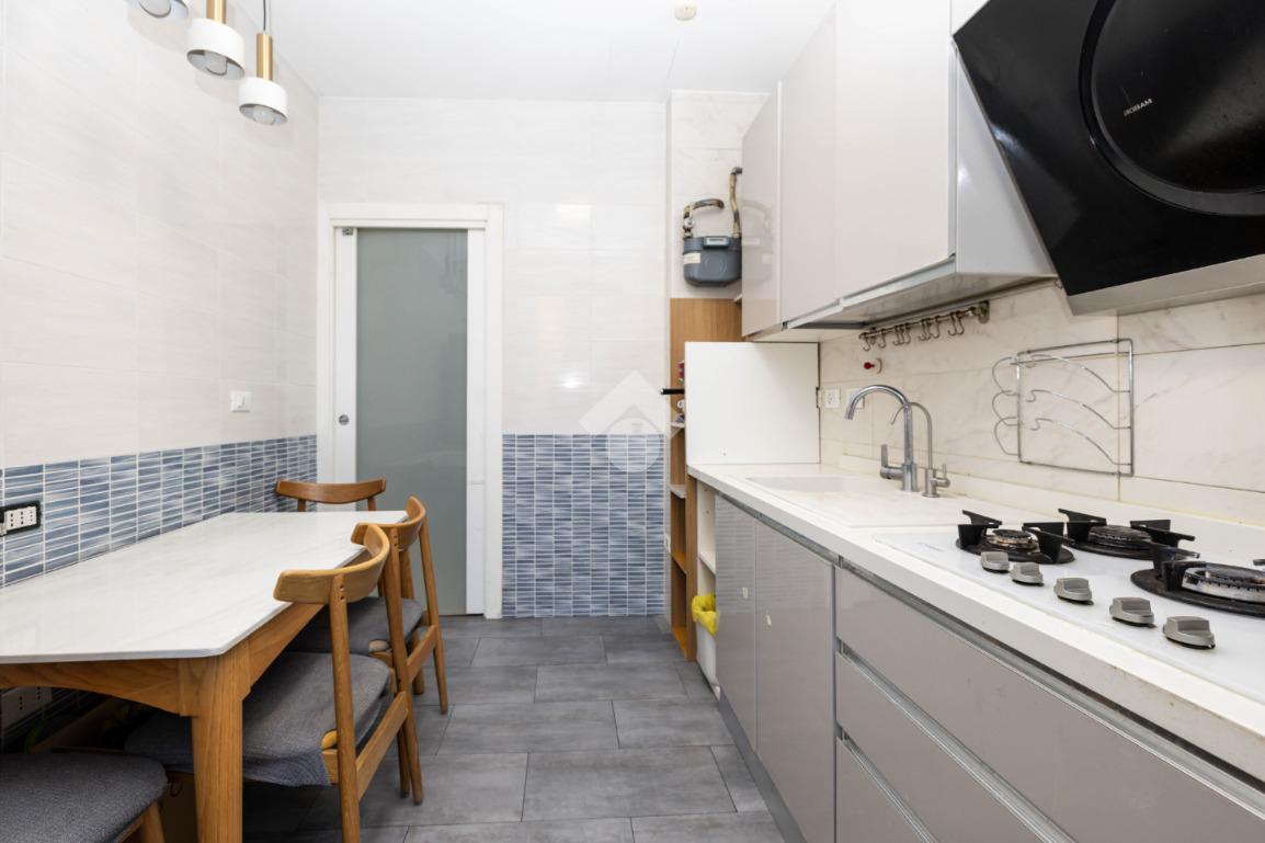 L’appartamento si apre su ingresso con disimpegno che conduce ai vari ambienti. La cucina è abitabile, separata e funzionale. La zona giorno è luminosa e valorizzata da pavimentazione nuova in marmo.